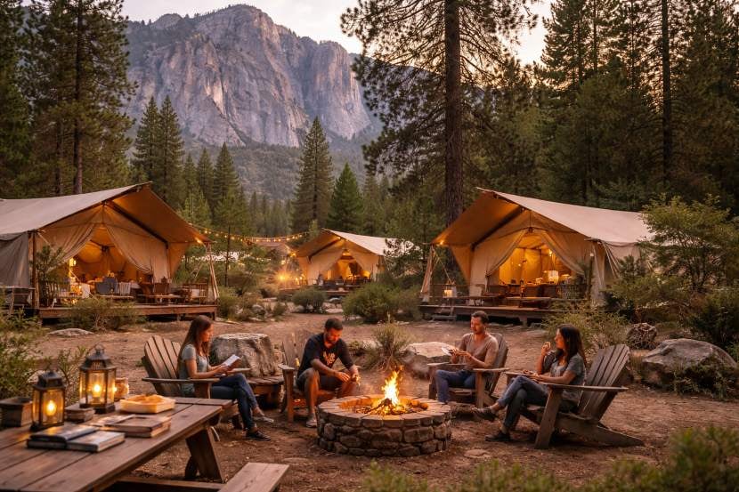 World of Hyatt brings back Camp Unwritten, an exclusive literary glamping series with Reese's Book Club at Under Canvas Yosemite and ULUM Moab. Guests immerse in upscale tents under starlit skies, joining authors like Rainbow Rowell for fireside chats, s'mores, private toasts, and intimate Q&As. Highlights include guided Yosemite National Park trips with chef-prepared lunches, literary-inspired meals, and welcome bags stocked with bestselling books such as Slow Dance.